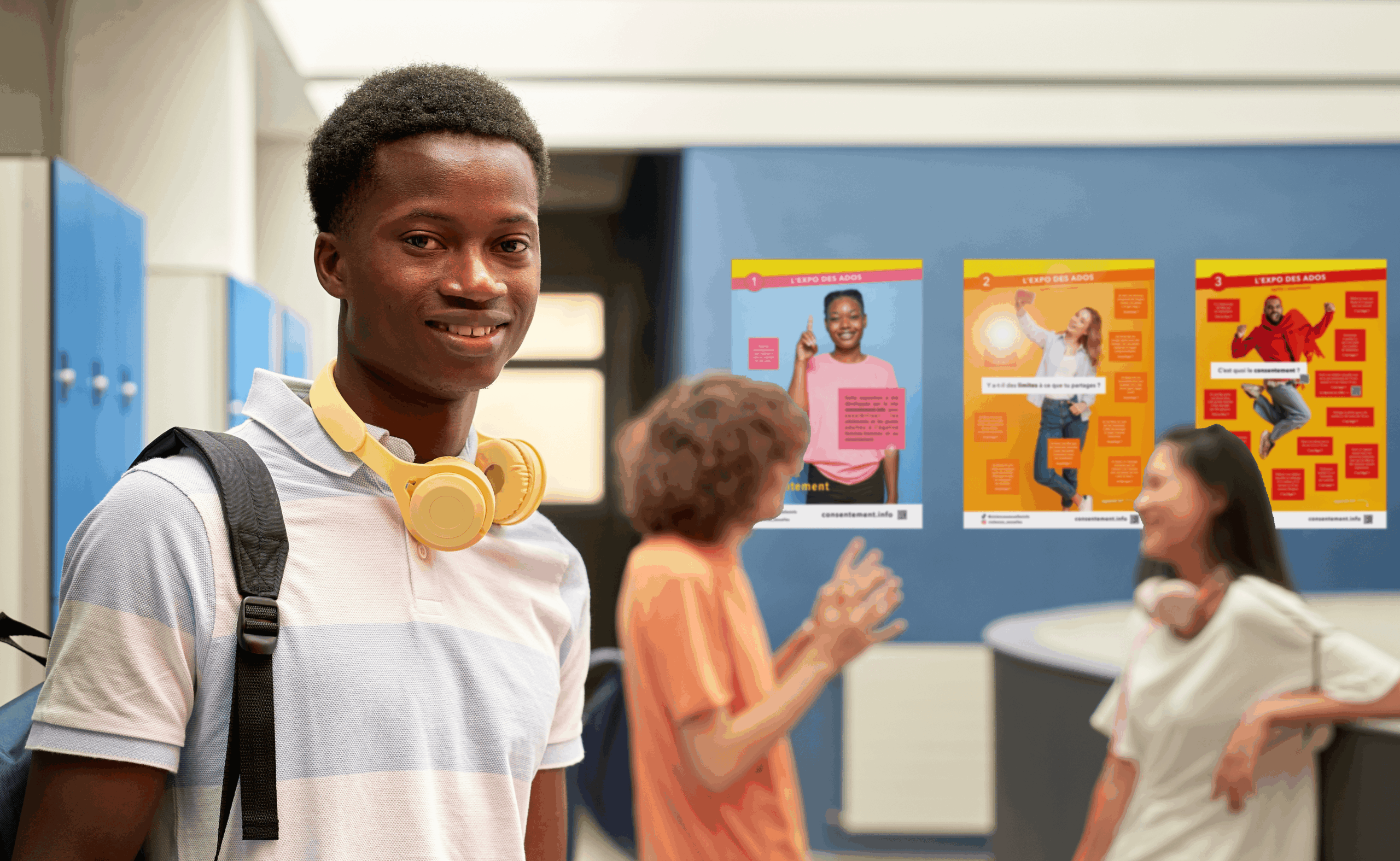 Les affiches proposent des informations sur le consentement, des jeux sur les limites du partage de contenus sur les réseaux sociaux, les limites légales des relations amoureuses et sexuelles, les codes de la séduction et les représentations (stéréotypes…).